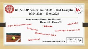 Termine Die nächsten Termine: AlleAnstehend201820192020202120222023202420252026 Do.16Apr.2026So.19Apr.2026 Dunlop Senior TourTC RW Laasphe a
